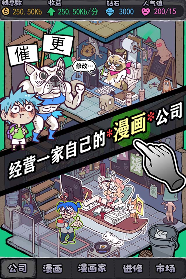 画漫画?不不不,想我这么撸瑟的人这辈子都不会去画漫画的! 不过……雇一些名人大佬给我画漫画还是蛮不错的!(小皮鞭抽起来~~) 《人气王漫画社》可以帮助懒癌患者实现漫画梦想!!!!!!!!!!!(声嘶力竭的吼声响彻云霄) 先选个漫画主角!再挑个世界观!搭配出神作!财富!粉丝!还怕没有嘛!~