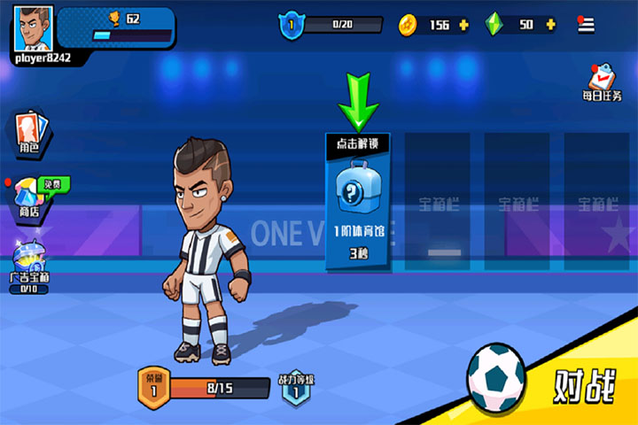 冲关极限营小游戏是一款充满趣味与竞技性的足球主题小游戏。 在游戏中,你将操控卡通风格的足球角色,参与紧张刺激的 1V1 足球对战。通过灵活的操作,运用各种技巧去争夺足球,向对手的球门发起冲击。 游戏内设有丰富的养成元素,你可以解锁不同外观与能力的角色,还能通过开启宝箱获取金币、稀有道具等奖励,用于强化角色战力,让你的球员在赛场上更具优势。